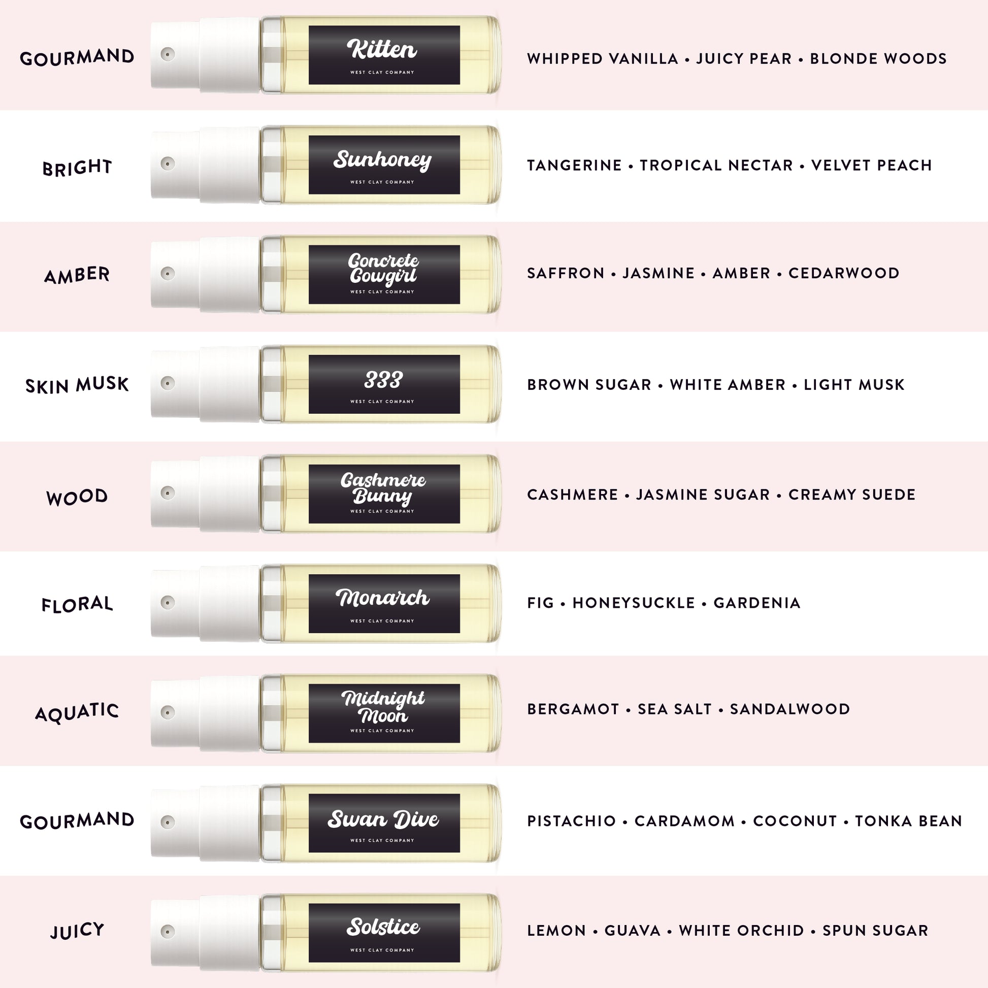 *Each scent is composed with intention — a curated blend of natural botanicals and safe, modern synthetics that create depth and longevity. Our formulas are always nut-free. If you have questions about allergens, we’d love to help at hello@westclaycompany.com